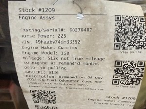 Remaned on 09 Nov 2014 Excellent running engine with Technical readouts from mechanic. Engine is in new condition (Actual Odometer does not reflect mileage on engine)